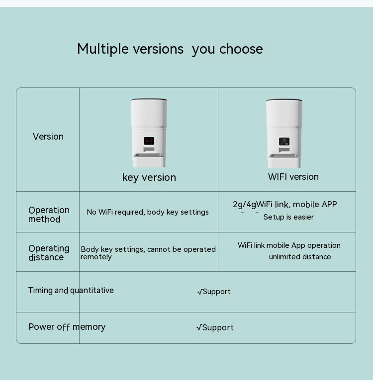 Multiple Control Options: Choose between manual button operation, app control, or video-enabled intelligence for flexible feeding management.